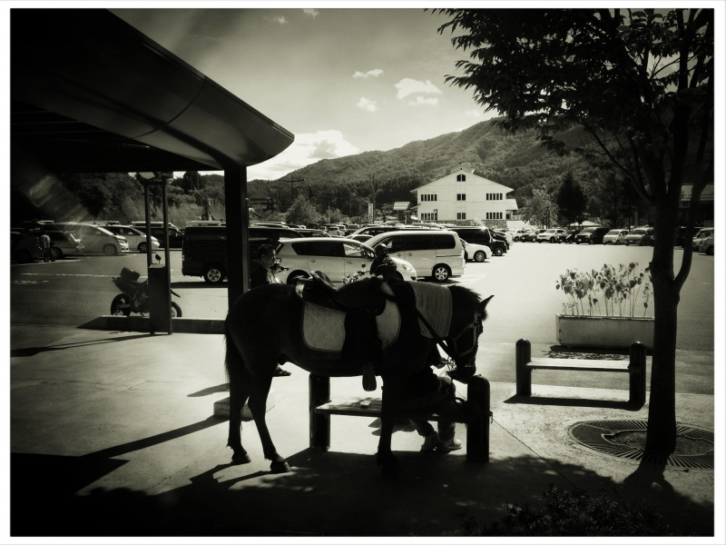 ロードサービスから連絡もないので、時間つぶしに乗ってみるか、と思い、生まれて初めての乗馬体験をする。